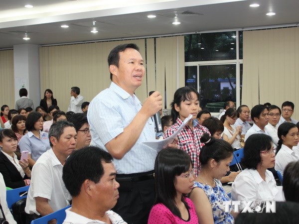| វិនិយោគិននៅខេត្ត Binh Duong ថ្លែងមតិក្នុងពិធីដែលថ្នាក់ដឹកនាំខេត្ត Binh Duong ជួបប្រាស្រ័យជាមួយអង្គភាពអាជីវកម្មក្នុងខេត្ត (រូបថតៈ TTXVN) |