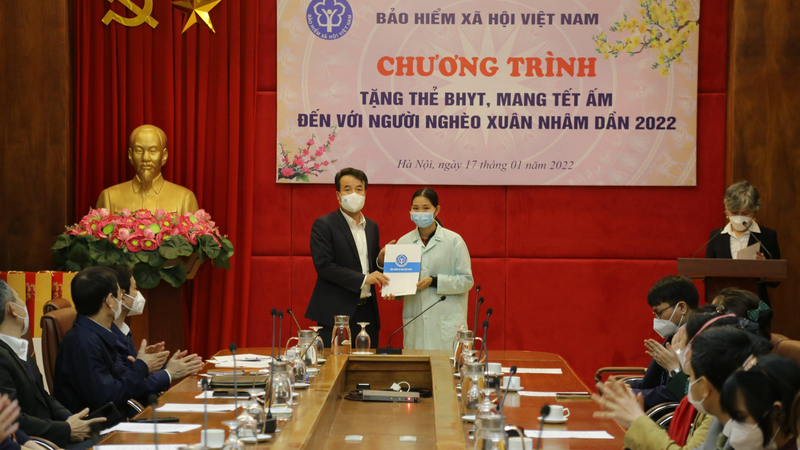 លោក Nguyen The Manh អគ្គនាយកធានារ៉ាប់រងសង្គមវៀតណាមប្រគល់អំណោយជូនអ្នកជម្ងឺដែលមានស្ថានភាពលំបាក។ (រូបថត៖ baophapluat.vn) |