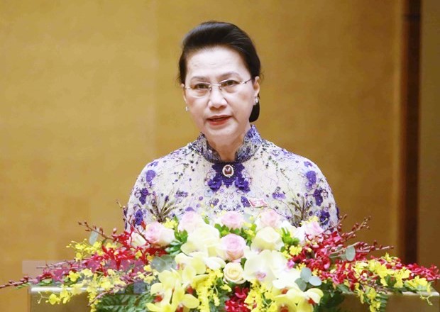 ប្រធានរដ្ឋសភា លោកស្រី Nguyen Thi Kim Ngan អញ្ជើញបង្ហាញរបាយការណ៍ការងារសម្រាប់អាណត្តិទី១៤ (រូបថត៖ TTXVN) |
