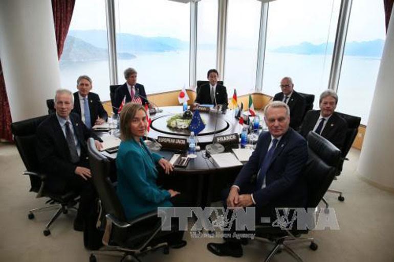 | រដ្ឋមន្ត្រីការបរទេសក្រុម G7 ក្នុងសម័យប្រជុំដំបូង(រូបថតៈ AFP/TTXVN) |