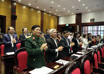 | សមាជិក សមាជិកាសភាទះដៃអបអរសាទរការអនុម័តរដ្ឋធម្មនុញ្ញធ្វើវិសោធនកម្ម (រូបថតៈ Thai Binh) |