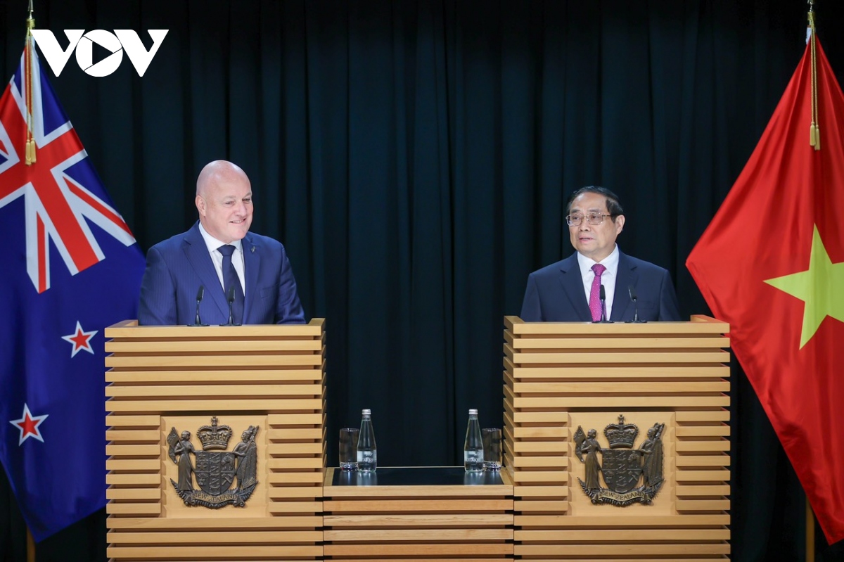 ក្នុងពេលនោះ នៅប្រទេសនូវែលសេឡង់ នាយករដ្ឋមន្ត្រីលោក Pham Minh Chinh បានអញ្ជើញជួបពិភាក្សាការងារយ៉ាងទូលំទូលាយជាមួយនាយករដ្ឋមន្ត្រីលោក Christopher Luxon ហើយបានជួបជាមួយថ្នាក់ដឹកនាំជាន់ខ្ពស់នូវែលសេឡង់មួយចំនួន។ ក្រៅពីវិស័យកិច្ចសហប្រតិបត្តិការប្រពៃណី ដំណើរទស្សនកិច្ចនេះក៏បានបើកចេញឱកាសសហប្រតិបត្តិការលើវិស័យថ្មីៗមួយចំនួនដូចជា៖ ការឆ្លើយតបទៅនឹងការប្រែប្រួលអាកាសធាតុ ការផ្លាស់ប្តូរឌីជីថល។ អញ្ជើញជូនដំណឹងដល់មជ្ឈដ្ឋានសារព័ត៌មាននៃប្រទេសទាំងពីរបន្ទាប់ពីកិច្ចពិភាក្សាប្រកបដោយជោគជ័យ នាយករដ្ឋមន្ត្រីលោក Pham Minh Chinh បានសង្កត់ធ្ងន់ថា៖