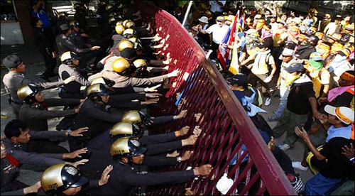 លឿង(ប្រឆាំង អតីតនាយករដ្ឋមន្រ្តីថៃThaksinShinawatra)ជាមួយភាគីអាវក្រហម(ភាគី