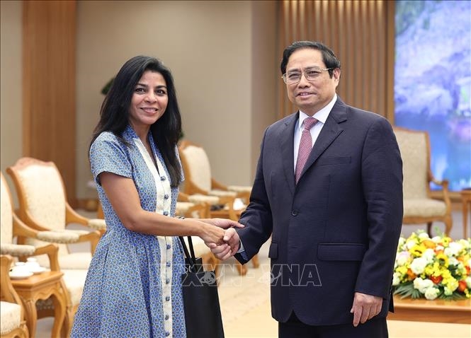នាយករដ្ឋមន្ត្រីលោក Pham Minh Chinh និងលោកស្រី Era Dabla-Norris ប្រធានគណៈប្រតិភូឃ្លាំមើលរបស់មូលនិធិរូបិយវត្ថុអន្តរជាតិ (IMF)។ រូបថត៖ VNA |