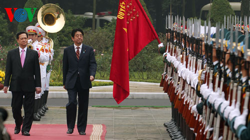 | នាយករដ្ឋមន្ត្រីជប៉ុនលោក Shinzo Abe ក្នុងដំណើរទស្សនកិច្ចជាផ្លូវការនៅវៀតណាមនាខែមករាឆ្នាំ២០១៣ (VOV) |