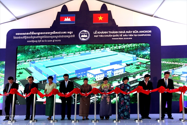 | ពិធីកាត់ខ្សែបូរសម្ភោធការដ្ឋានសងសង់រោងចក្រផលិតទឹកដោះគោ Angkormilk (vietnam.vnanet.vn) |