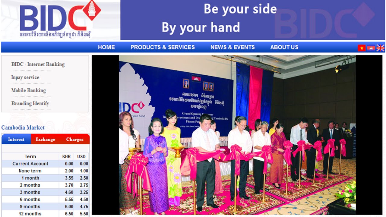 | កេហទំព័ររបស់ធនគារវិនិយោគនិងអភិវឌ្ឍន៍កម្ពុជា (BIDC) (www.bidc.kh) |