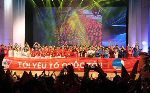 | យុវជនវៀតណាមប្រមូលកំលាំងក្នុងចលនា” ខ្ញុំស្រឡាញ់ មាតុប្រទេសខ្ញុំ “(រូបថតVOV) |