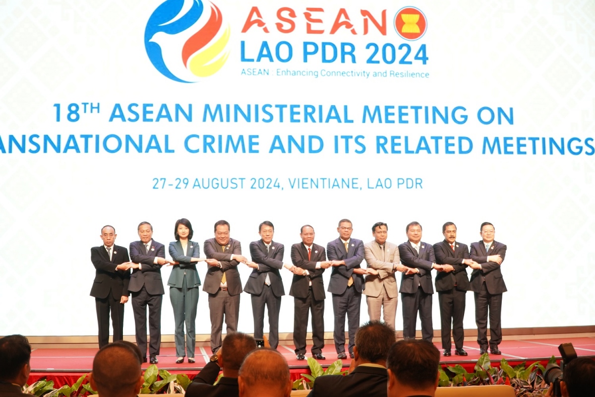 គណៈប្រតិភូចូលរួមសន្និសីទថ្នាក់រដ្ឋមន្ត្រីអាស៊ានលើកទី១៨ ស្តីពីការបង្ការ ប្រយុទ្ធប្រឆាំងឧក្រិដ្ឋកម្មឆ្លងដែន (រូបថត៖ PV/VOV-Vientiane) |