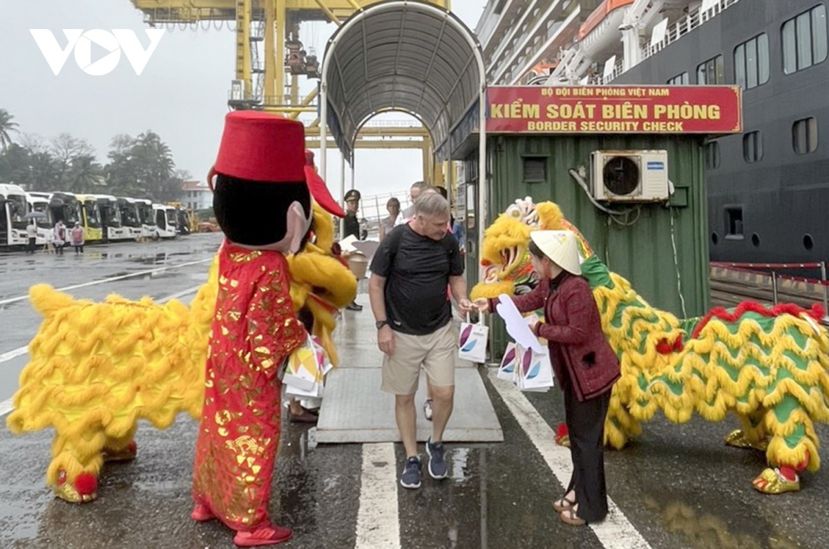 ភ្ញៀវទេសចរណ៍ទទួលបានការទទួលស្វាគមន៍យ៉ាងកក់ក្តៅនៅកំពង់ផែ Tien Sa (រូបថត៖ VOV) |