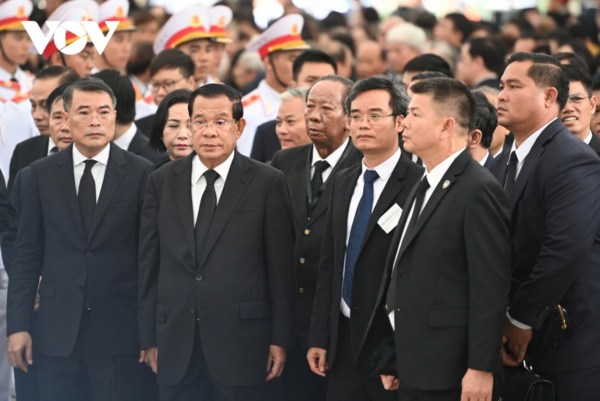 បន្ទាប់មក គណៈប្រតិភូរដ្ឋាភិបាលនៃសាធារណៈរដ្ឋសង្គមនិយមវៀតណាម ដឹកនាំដោយសមាជិកការិយាល័យនយោបាយ លោកនាយករដ្ឋមន្ត្រី ហ្វាម មិញ ជិញ; ប្រធានរដ្ឋនៃសាធារណរដ្ឋសង្គមនិយមវៀតណាម ដឹកនាំដោយសមាជិកការិយាល័យនយោបាយ ប្រធានរដ្ឋ តូ ឡឹម; គណៈប្រតិភូរដ្ឋសភានៃសាធារណៈរដ្ឋសង្គមនិយមវៀតណាមដឹកនាំដោយសមាជិកការិយាល័យនយោបាយ ប្រធានរដ្ឋសភាលោក ត្រឹម ថាញ់ មិន; គណៈប្រតិភូគណៈកម្មាធិការមជ្ឈិមរណសិរ្សមាតុភូមិវៀតណាម ដឹកនាំដោយសមាជិកការិយាល័យនយោបាយ ប្រធានគណៈកម្មាធិការមជ្ឈិមរណសិរ្សមាតុភូមិ វៀតណាម លោក ដូ វ៉ាន់ ចៀន អញ្ជើញចូលគោរពវិញ្ញាណក្ខន្ធលោកអគ្គលេខាបក្ស។