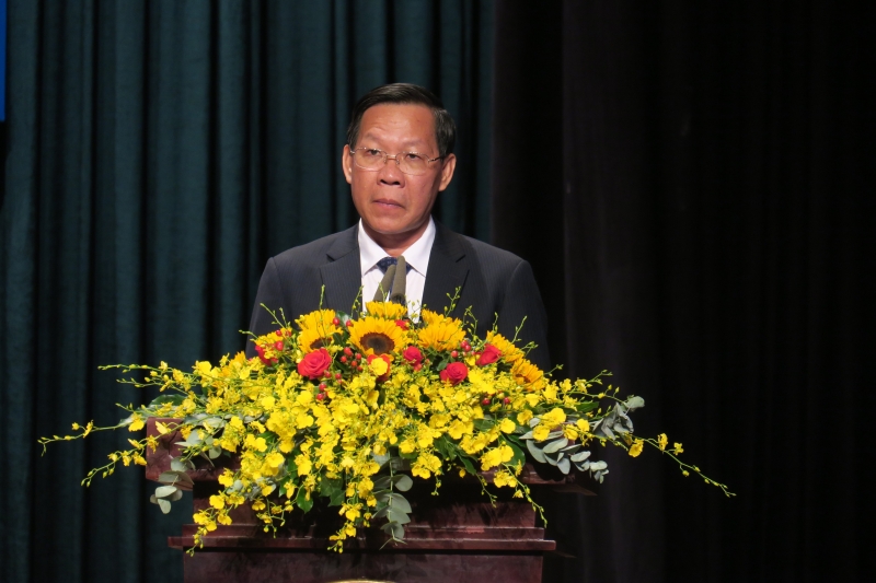 ប្រធានគណៈកម្មាធិការប្រជាជនទីក្រុងហូជីមិញ លោក Phan Van Mai អញ្ជ់ើញថ្លែងក្នុងពិធី |
