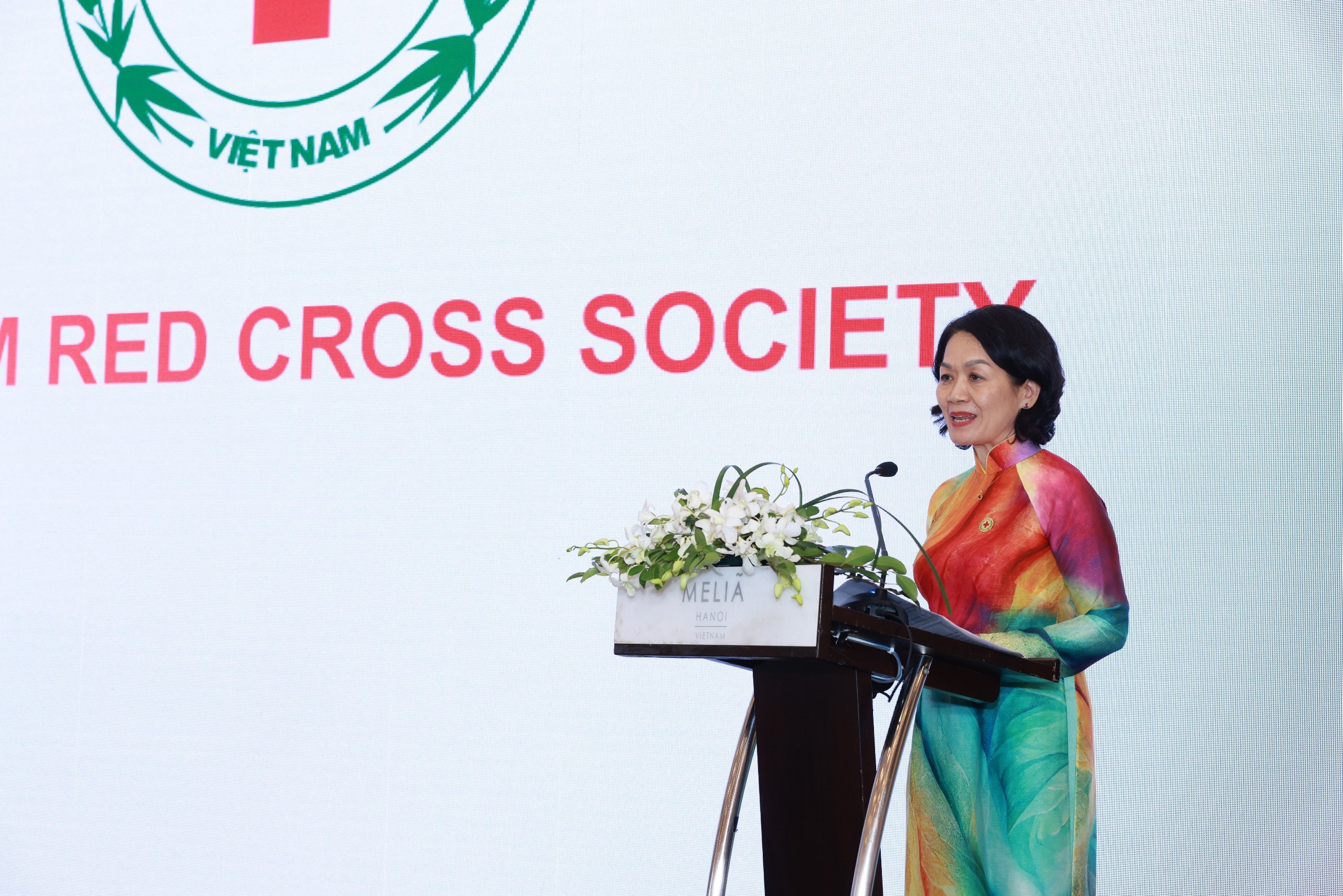 ប្រធានសមាគមកាកបាទក្រហមវៀតណាមមជ្ឈិមលោកស្រី Bui Thi Hoa អញ្ជើញថ្លែងមតិក្នុងពិធីបិទ |