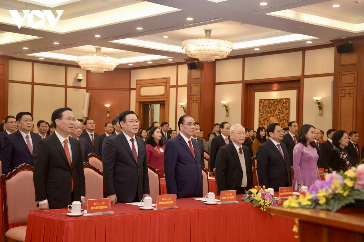 ថ្លែងមតិក្នុងពិធីនេះ លោក Vo Van Thuong សមាជិកអចិន្រ្តៃយ៍គណៈលេខា បានអបអរសាទរយ៉ាងកក់ក្តៅចំពោះលោកអគ្គលេខាបក្ស Nguyen Phu Trong ក្នុង ឱកាសទទួលកិត្តិនាមដ៏ថ្លៃថ្នូរបស់បក្ស ដែលទទួលស្គាល់ដំណើរការលះបង់ គុណូបការៈដ៏ធំធេងរបស់លោកអគ្គលេខាបក្ស ចំពោះបុព្វហេតុកសាងបក្សឲ្យកាន់តែ ស្អាតស្អំនិងរឹងមាំ។ ចូលជាបក្ខជននៅថ្ងៃទី ១៩ ខែធ្នូ ឆ្នាំ ១៩៦៧ ក្នុងអំឡុងពេល ៥៥ ឆ្នាំបម្រើក្នុងជួរបក្សកុម្មុយនិស្តវៀតណាម លោក Nguyen Phu Trong ជានិច្ចកាល ស្មោះត្រង់យ៉ាងដាច់ខាតចំពោះបក្ស មាតុភូមិ និងប្រជាជន។ ក្នុងឋានៈជាអគ្គលេខា បក្ស លោក Nguyen Phu Trong បានបង្ហាញយ៉ាងច្បាស់នូវតួនាទីជាស្នូលក្នុងការ ដឹកនាំ រួមជាមួយគណៈកម្មាធិការមជ្ឈិមបក្ស ការិយាល័យនយោបាយ និងគណៈ លេខា កសាងបាននូវសាមគ្គីភាព បង្រួបបង្រួមឆន្ទៈ និងសកម្មភាពក្នុងបក្ស បង្កើត ឡើងឯកភាពខ្ពស់ក្នុងប្រព័ន្ធនយោបាយ ហើយដឹកនាំបក្សទាំងមូល ប្រជាជនទាំងមូល និងកងទ័ពទាំងមូលសម្រេចបានសមិទ្ធិផលសំខាន់ៗជាច្រើនលើវិស័យនានា ធ្វើឱ្យ បុព្វហេតុ កម្លាំង ឋានៈ និងកិត្យានុភាព អន្តរជាតិរបស់ប្រទេសវៀតណាមកាន់តែ កើនឡើងនិងរឹងមាំ។