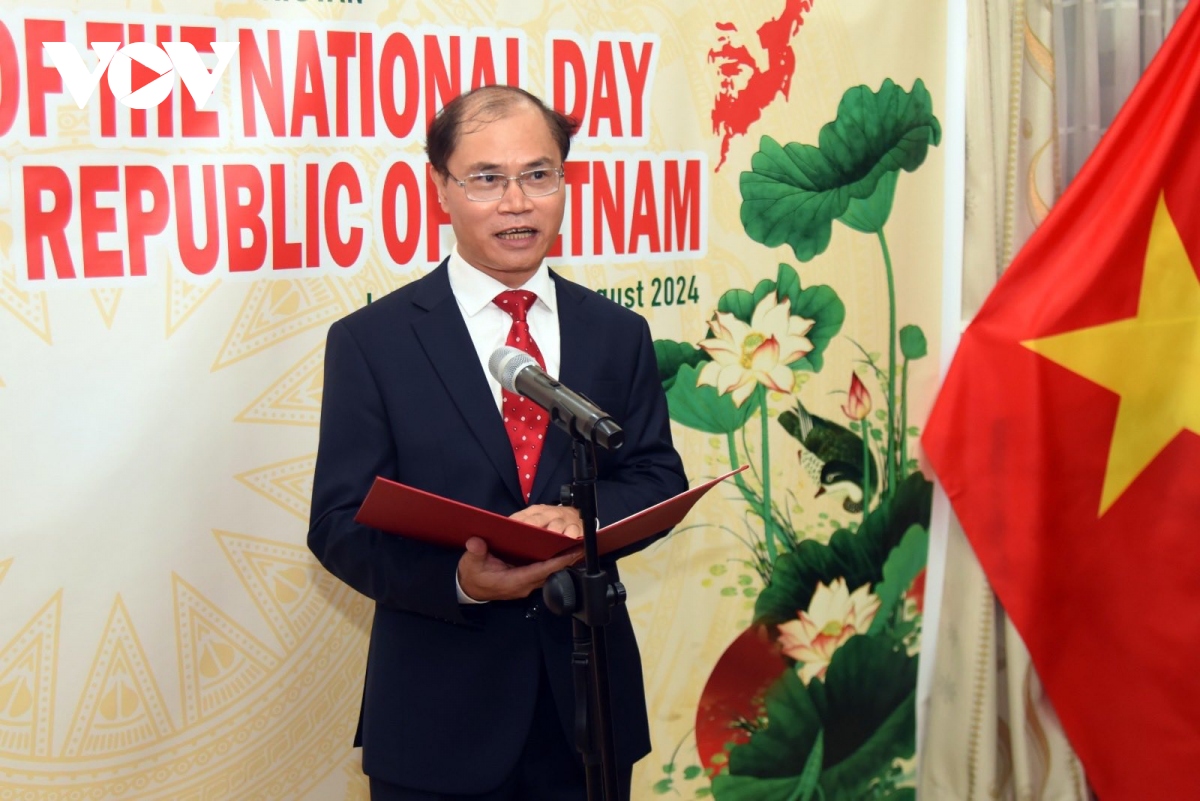 ឯកអគ្គរដ្ឋទូតវៀតណាមប្រចាំនៅប៉ាគីស្ថាន លោក Pham Anh Tuan ថ្លែងក្នុងពិធីអបអរសាទរទិវាបុណ្យឯករាជ្យជាតិលើកទី៧៩ នៅរដ្ឋធានី Islamabad នាល្ងាចថ្ងៃទី៣០ ខែសីហា (រូបថត៖ VOV) |
