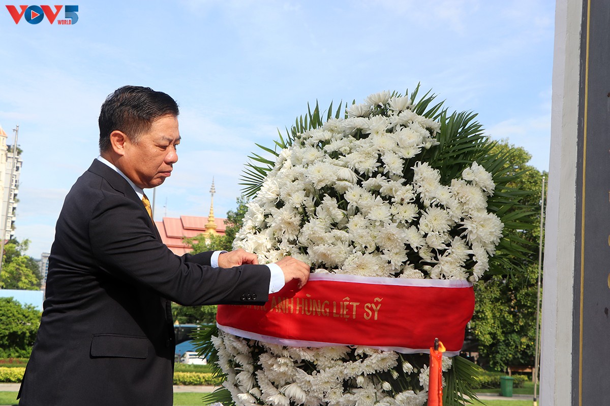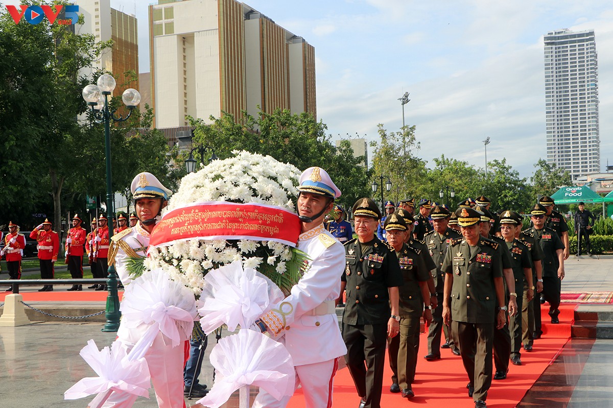 វៀតណាមនៅកម្ពុជា និងតំណាង ក្រសួងការពារជាតិ កម្ពុជា បានមកអុជធូបទទៀន និងដាក់កម្រងផ្កា នៅវិមានមិត្តភាពវៀតណាម-កម្ពុជា នៅរាជ ធានីភ្នំពេញ។