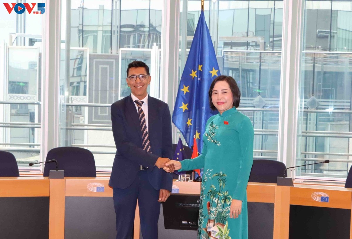 ក្នុងក្របខ័ណ្ឌនៃដំណើរទស្សនកិច្ចនេះ នាព្រឹកថ្ងៃទី ១៧ កញ្ញា នៅទីក្រុង Brussels (បែលហ្សិក) អនុប្រធានរដ្ឋសភា លោកស្រី Nguyen Thi Thanh បានជួបសន្ទនាជាមួយអនុប្រធានសភាអឺរ៉ុប(EP) លោក Younous Omarjee។ នៅក្នុងជំនួបនេះ ភាគីទាំងពីរបានឯកភាពបន្តផ្តល់អាទិភាពខ្ពស់ក្នុងការជំរុញយ៉ាងខ្លាំងកិច្ចសហប្រតិបត្តិការ ដោយផ្តោតលើវិស័យពាណិជ្ជកម្ម និងវិនិយោគ ក្នុងនោះ រួមទាំងការអនុវត្តប្រកបដោយប្រសិទ្ធភាពនូវកិច្ចព្រមព្រៀងពាណិជ្ជកម្មសេរីវៀតណាម - EU (EVFTA) ពង្រឹងកិច្ចសហប្រតិបត្តិការលើវិស័យជាប្រៀបខ្លាំងរបស់ EU ដូចជា៖ វិទ្យាសាស្ត្រ បច្ចេកវិទ្យា នវានុវត្តន៍ ការផ្លាស់ប្តូរបៃតង ការផ្លាស់ប្តូរឌីជីថល ការបណ្តុះបណ្តាលធនធានមនុស្សគុណភាពខ្ពស់ ។ល។ អនុប្រធានរដ្ឋសភាលោកស្រី Nguyen Thi Thanh ក៏បានស្នើរឲ្យ EP ជំរុញការអនុម័តលើកិច្ចព្រមព្រៀងការពារការវិនិយោគវៀតណាម-សហភាពអឺរ៉ុប (EVIPA)។