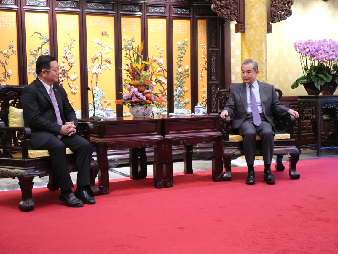 ប្រធានការិយាល័យគណៈកម្មាធិការទទួលបន្ទុកកិច្ចការ បរទេសនៃមជ្ឈិមបក្សកុម្មុយនិស្តចិន លោក Wang Yi ជួបពិភាក្សាការងារជាមួយអគ្គលេខាធិការសមាគមប្រជាជាតិអាស៊ីអាគ្នេយ៍ (អាស៊ាន) លោក កៅ គឹមហួន។ (រូបថត៖ ASEAN) |