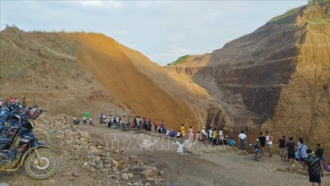 ការបាក់ដីអណ្តូងរ៉ែត្បូងនៅក្បែរភូមិ Ma Na ទីក្រុង Hpakant ប្រទេសមីយ៉ាន់ម៉ា។ រូបថត៖ THX/TTXVN |