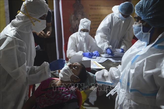 បុគ្គលិកពេទ្យបានយកសំណាកធ្វើតេស្តជំងឺកូវីដ១៩ សម្រាប់ប្រជាជននៅទីក្រុងបុមបៃ ប្រទេសឥណ្ឌា កាលពីថ្ងៃទី ១៦ ខែកញ្ញាឆ្នាំ ២០២០ ។ (រូបថត៖ AFP / TTXVN) |