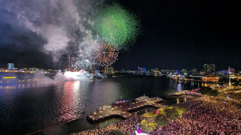 នាយប់ថ្ងៃទី ៣០ មេសា ប្រជាជនរាប់ពាន់នាក់បានប្រមូលផ្ដុំគ្នានៅមជ្ឈមណ្ឌលទីក្រុងហូជីមិញដើម្បីលេងកម្សាន និងទស្សនា ការបាញ់កាំជ្រួចផ្កាភ្លើង អបអរសាទរពិធីរំលឹកខួបលើកទី ៤៩ ទិវារំដោះវៀតណាមខាងត្បូង ឯកភាពប្រទេសជាតិ (៣០ មេសា ១៩៧៥-៣០ មេសា ២០២៤)។