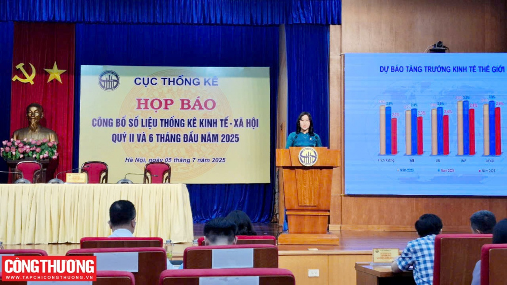 លោកស្រី Nguyen Thi Huong ប្រធាននាយកដ្ឋានស្ថិតិជម្រាបអំពីអត្រាកំណើនសេដ្ឋកិច្ចក្នុងរយៈពេល៦ខែដើមឆ្នាំ។ (រូបថត៖ congthuong.vn) |