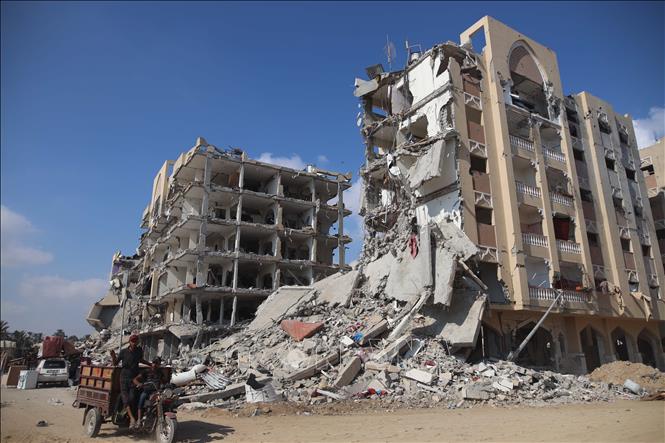 គំនរបែកបាក់ដែលបង្កឡើងដោយជម្លោះហាម៉ាស-អ៊ីស្រាអែល នៅក្នុងក្រុង Deir al-Balah តំបន់ហ្គាហ្សា ថ្ងៃទី ៣០ ខែសីហា ឆ្នាំ ២០២៤។ រូបថត៖ THX/TTXVN |