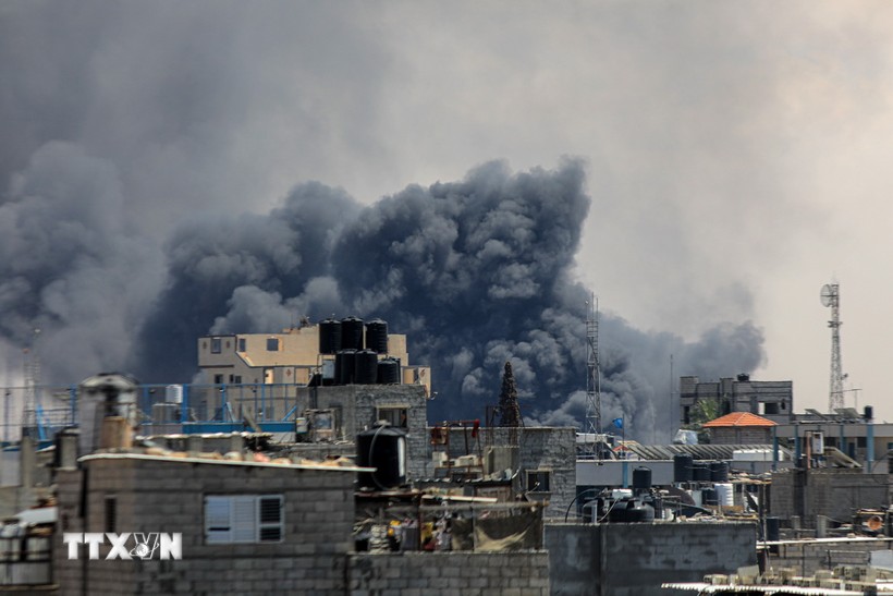 ផ្សែងហុយឡើងបន្ទាប់ពីការវាយប្រហារតាមផ្លូវអាកាស របស់អ៊ូស្រាអែល នៅក្រុង Rafah តំបន់ហ្គាហ្សា កាលពីថ្ងៃទី ៧ ខែឧសភា។ រូបថត៖ THX/TTXVN |