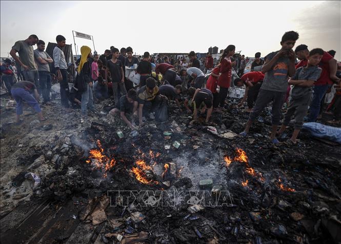 ទិដ្ឋភាពនៃការបំផ្លិចបំផ្លាញបន្ទាប់ពីការវាយប្រហាររបស់កងទ័ពអ៊ីស្រាអែលលើជំរំជនភៀសខ្លួនប៉ាឡេស្ទីនក្នុងក្រុង Rafah តំបន់ Gaza Strip កាលពីថ្ងៃទី២៧ ខែឧសភា ឆ្នាំ២០២៤ (រូបថត៖ AA/TTXVN) |