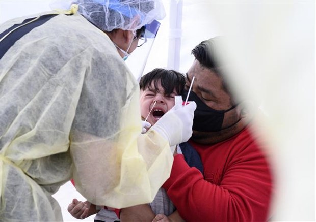 បុគ្គលិកពេទ្យយកសំណាកធ្វើតេស្តកូវីដ ១៩ សម្រាប់កុមារនៅ Compton សហរដ្ឋអាមេរិក។ (រូបថត៖ AFP/TTXVN) |