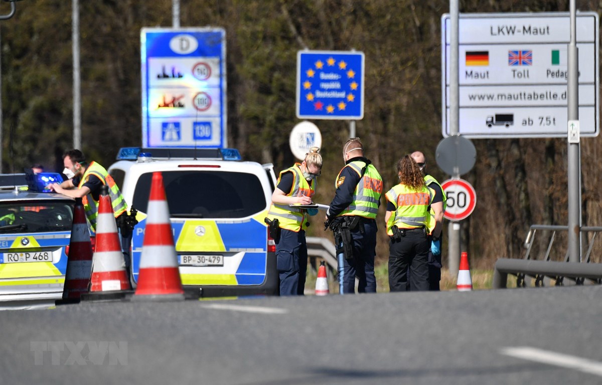 ប៉ូលីសអាល្លឺម៉ង់ត្រួតពិនិត្យយានយន្តនៅតំបន់ព្រំដែនអាល្លឺម៉ង់ - អូទ្រីស (រូបថត៖ AFP / TTXVN) |