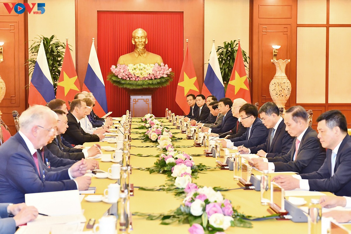 នារសៀលថ្ងៃទី ២២ ឧសភា នៅទីក្រុងហាណូយ អគ្គលេខាគណៈកម្មាធិការមជ្ឈិមបក្សកុម្មុយនិស្តវៀតណាម លោក Nguyen Phu Trong បានអញ្ជើញជួបពិភាក្សាជាមួយប្រធានគណបក្សប្រទេសរុស្ស៊ីឯកភាពអនុប្រធានក្រុមប្រឹក្សាសន្តិសុខសហព័ន្ធរុស្ស៊ី លោក Dmitry Medvedev ដែលកំពុងបំពេញទស្សនកិច្ចជាផ្លូវការនៅវៀតណាមចាប់ពីថ្ងៃទី ២១ ដល់ថ្ងៃទី ២៣ ឧសភា ក្រោមកិច្ចព្រមព្រៀងសហប្រតិបត្តិការរវាងបក្សកុម្មុយនិស្តវៀតណាម និងគណបក្សប្រទេសរុស្ស៊ីឯកភាព។