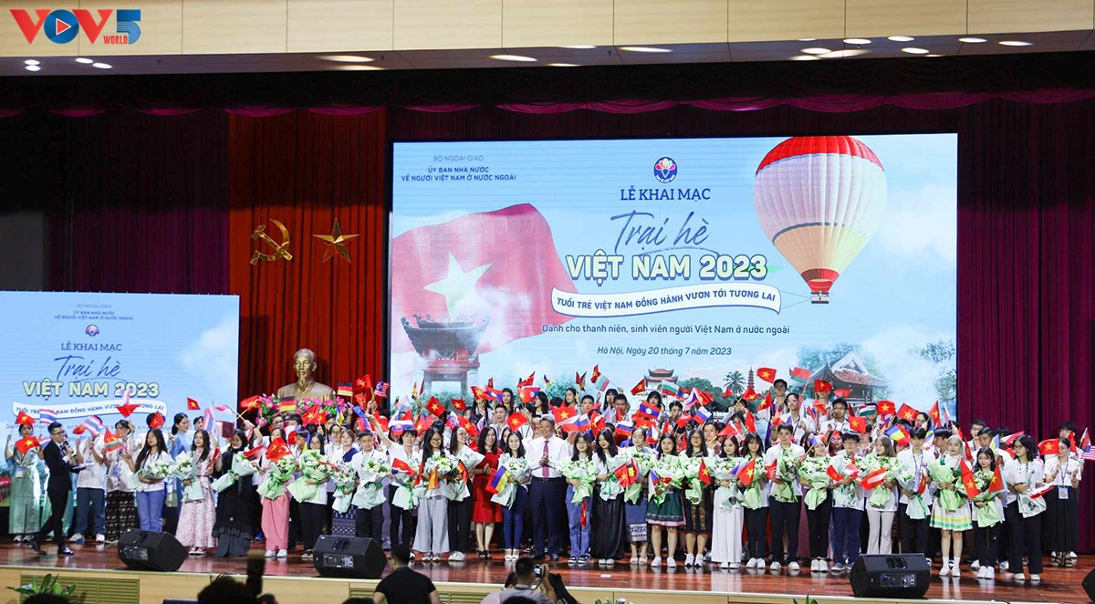 ពិធីបើកជំរុំរដូវក្តៅវៀតណាមឆ្នាំ ២០២៣ ក្រោមប្រធានបទ “យុវជនវៀតណាមរួមដំណើរឆ្ពោះទៅអនាគត”។ Quynh Duong/VOV5 |