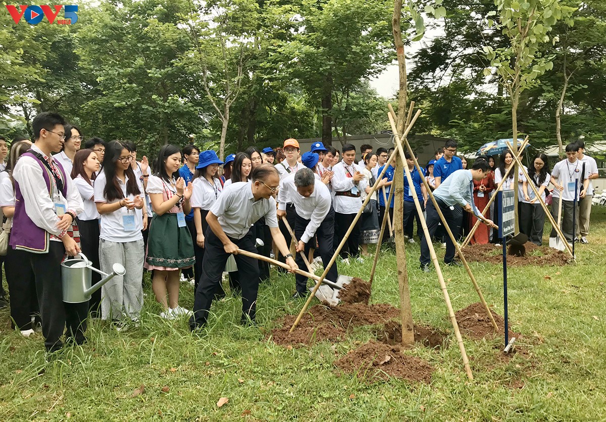 សកម្មភាពដាំដើមឈើក្នុងក្របខ័ណ្នៃឌជំរុំរដូវក្តៅវៀតណាមឆ្នាំ ២០២៣។ រូបថត៖ Lan Phuong/VOV5 |