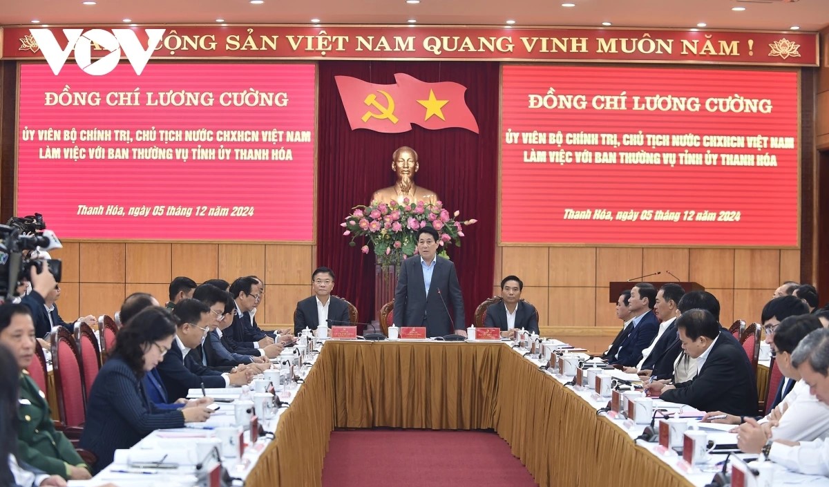 ប្រធានរដ្ឋ លឿង គឿង បានធ្វើការជាមួយគណៈកម្មាធិការអចិន្ត្រៃយ៍គណៈកម្មាធិការបក្សខេត្ត Thanh Hoa។ រូបថត៖ VOV |