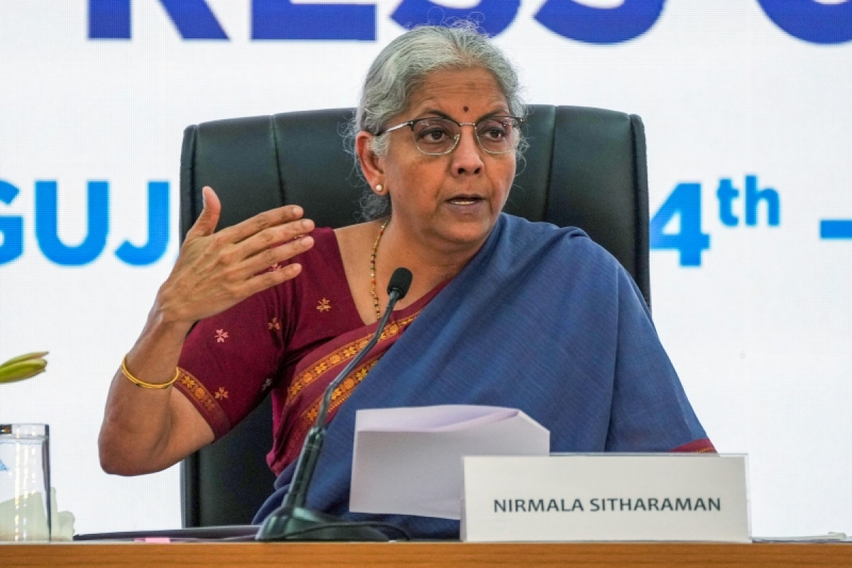 រដ្ឋមន្ត្រីហិរញ្ញវត្ថុឥណ្ឌា Nirmala Sitharaman ថ្លែងនៅក្នុងសន្និសីទសារព័ត៌មាន។ ប្រភព៖ ANI |