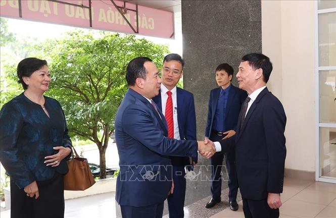 ថ្នាក់ដឹកនាំសាលាកម្មាភិបាលអធិការកិច្ចទទួលស្វាគមន៍លោក ហួត ហាក់ រដ្ឋមន្ត្រីក្រសួងអធិការកិច្ចកម្ពុជា មកបំពេញទស្សនកិច្ចការងារ។ (រូបថត៖ VNA) |