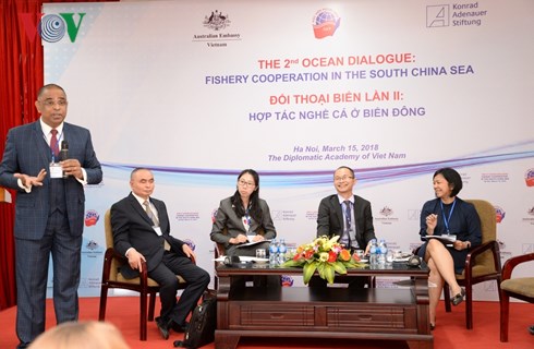 នាថ្ងៃទី ១៥ មិនា នៅទីក្រុងហាណូយ វិទ្យាស្ថានការទូត រួមសហការជាមួយមូលនិធិ Konrad-Adenauer- Stiftung(KAS)និងស្ថានទូតអូស្ត្រាលីប្រចាំនៅហាណូយរៀបចំ កិច្ចសន្ទនាស្ដីពីសមុទ្រលើកទីពីរដោយប្រធានបទកិច្ចសហប្រតិបត្តិការរបរនេសាទត្រីនៅសមុទ្រខាងកើត ដើម្បីធ្វើការពិភាក្សាអំពីស្ថានភាព និងវាយតម្លៃលើឱកាសសហប្រតិបត្តិការលើវិស័យនេសាទត្រីនៅសមុទ្រខាងកើត។ នៅទីនេះ អ្នកប្រាជ្ញបានឲ្យដឹងថា នាបច្ចុប្បន្ននៅសមុទ្រខាងកើត ស្ថានភាពនេសាទត្រីខុសច្បាប់ដោយបំផ្លាញបរិស្ថានសមុទ្រគឺជាមូលហេតុនាំមកនូវការថយចុះនៃប្រភពត្រី។ តាមលោក Peter Girke ប្រធានមូលនិធិ KAS ប្រចាំនៅវៀតណាមបានឲ្យដឹងថា ប្រទេសទាក់ទិននានាគប្បីមានវិធានការសហប្រតិបត្តិការឲ្យបានសមស្របនឹងផលប្រយោជន៍នៃប្រទេសនីមួយៗផងដែរ៕