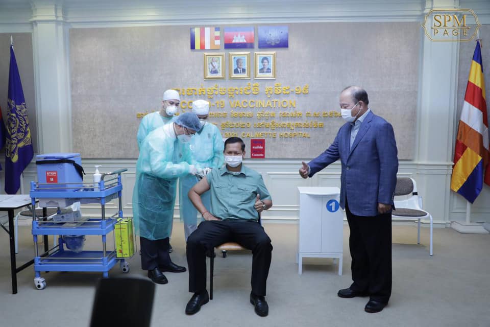 លោកឧត្តមសេនីយ៍ឯក ហ៊ុន ម៉ាណែត អគ្គមេបញ្ជាការរងនៃកងយោធពលខេមរភូមិន្ទ និងជាមេបញ្ជាការកងទ័ពជើងគោក កូនប្រុសច្បងរបស់សម្ដេចតេជោ ហ៊ុន សែន ជា អ្នកដំបូងដែលទទួលចាក់វ៉ាក់សាំងការពារ Covid-19 Sinopharm នេះ។ កម្ពុជានឹង ផ្ដល់អាទិភាពដល់ការចាក់វ៉ាក់សាំងជូនអ្នកដែលធ្វើការនៅខ្សែត្រៀមជួរមុខក្នុងការប្រយុទ្ធប្រឆាំងនឹងជម្ងឺរាតត្បាតដូចជា៖ គិលានុបដ្ឋាយិការ គ្រូពេទ្យ ទាហាន នគរបាល បុគ្គលិកបរិស្ថាន និងអ្នកសារព័ត៌មាន។ ដោយមានវ៉ាក់សាំងចំនួន៦០ម៉ឺន ដូសដែល ទើបតែទទួលពីប្រទេសចិន កម្ពុជាអាចចាក់ជូនប្រជាជនចំនួន៣០ម៉ឺននាក់ក្នុងវគ្គចាក់ វ៉ាក់សាំងលើកនេះ។ រាជរដ្ឋាភិបាលកម្ពុជាក៏មានផែនការស្នើសុំជំនួយនិងទិញវ៉ាក់សាំង បន្ថែមទៀត ដើម្បីផ្ដល់វ៉ាក់សាំងដោយឥតគិតថ្លៃសម្រាប់ចំនួនប្រជាជនពី៦០%ដល់ ៨០%នៃប្រជាពលរដ្ឋសរុបផងដែរ៕