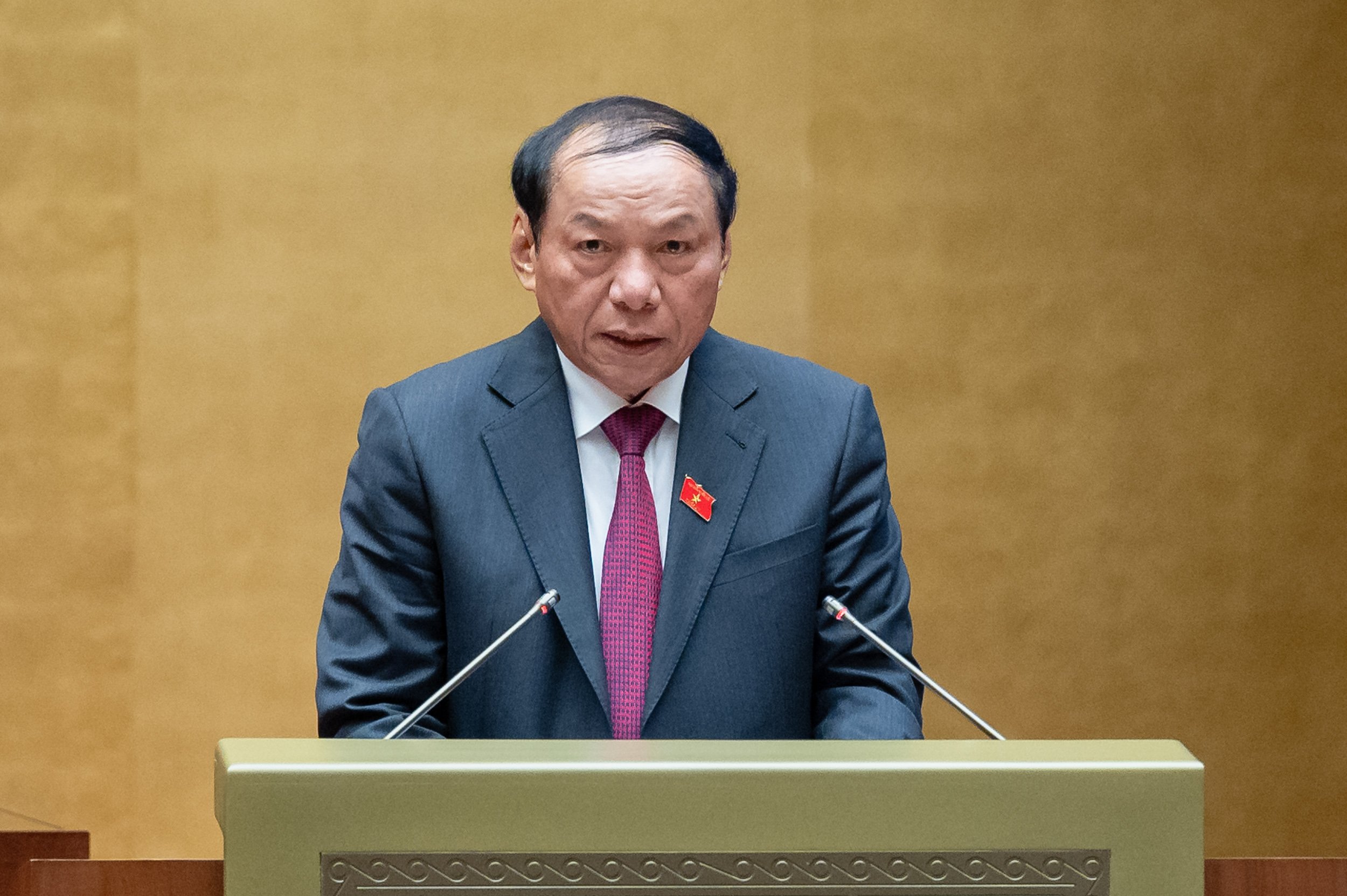 រដ្ឋមន្ត្រីក្រសួងវប្បធម៌ កីឡា និងទេសចរណ៍ លោក Nguyen Van Hung បង្ហាញសេចក្ដីសំណើអំពីគោលជំហរវិនិយោគនៃកម្មវិធីគោលដៅជាតិស្តីពីការអភិវឌ្ឍ វប្បធម៌ដំណាក់កាល ២០២៥ - ២០៣៥។ (រូបថត៖ quochoi.vn) |