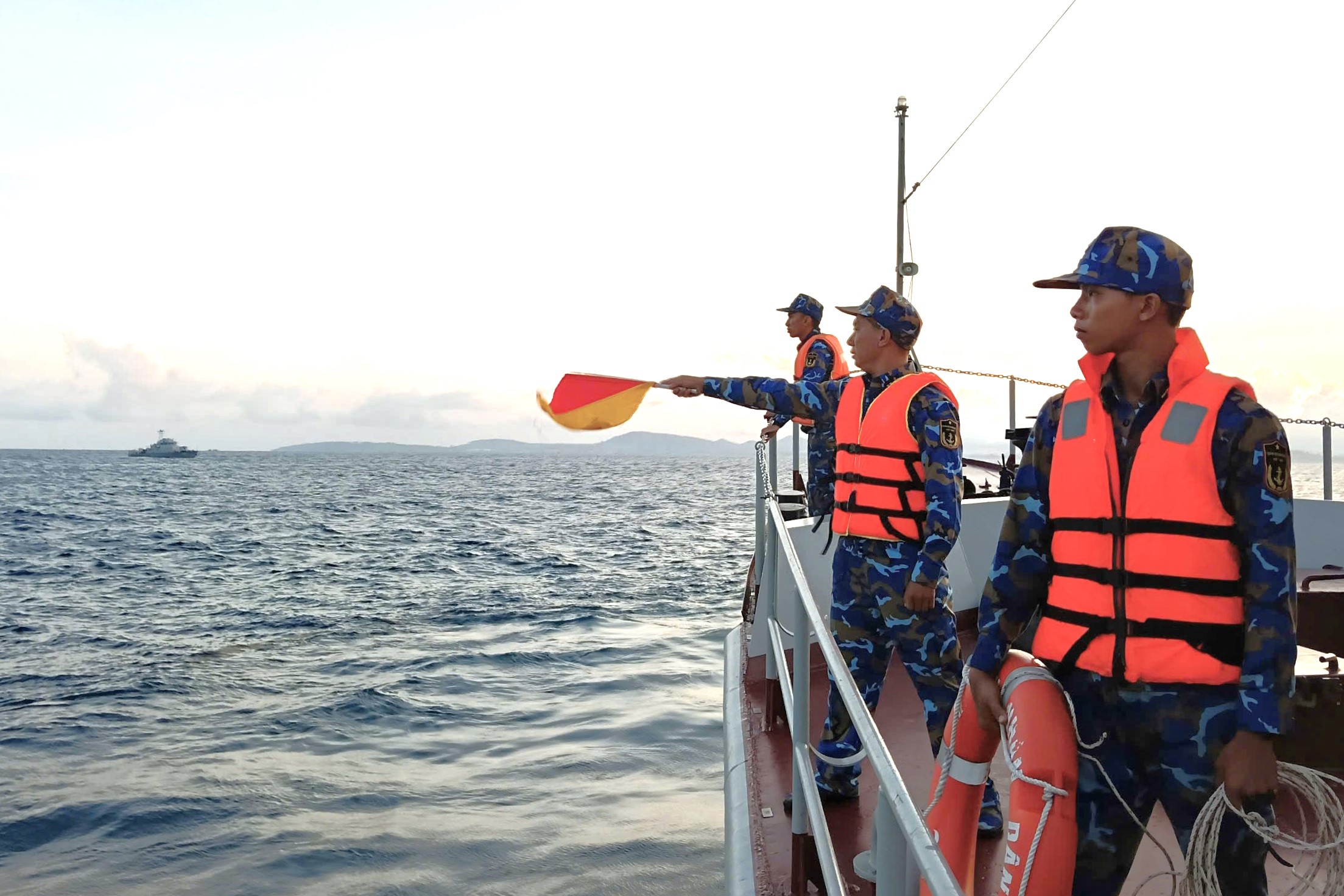 នាវាកងទ័ពជើងទឹកនៃប្រទេសទាំងពីរហ្វឹកហាត់ការស្វែងរក និងជួយសង្គ្រោះក្នុងអំឡុងពេលល្បាតរួម។ (រូបថត៖ baohaiquanvietnam.vn) |
