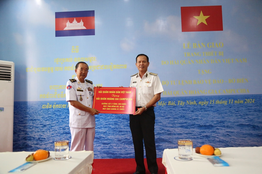 ថ្លែងមតិក្នុងពិធីនេះ ឧត្តមនាវីទោ Pham Viet Khanh សេនាធិការរងនៃកងទ័ពជើងទឹកវៀតណាមបានអះអាងថា ការប្រគល់សម្ភារៈជូនដល់បញ្ជាការដ្ឋានការពារកោះឆ្នេរ នៃកងទ័ពជើងទឹកកម្ពុជា គឺជាសក្ខីភាពដ៏រស់រវើកនៃចំណងមិត្តភាពជាប្រពៃណីរវាងប្រទេសទាំងពីរ។ លោកឧត្តមនាវីទោ សង្ឃឹមថា ជំនួយទាំងនេះនឹងរួមចំណែកលើកកំពស់ជីវភាពរស់នៅរបស់នាយទាហាន និងយោធិននៃបញ្ជាការដ្ឋានការពារកោះឆ្នេរ នៃកងទ័ពជើងទឹកកម្ពុជា។