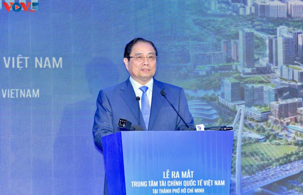 នាយករដ្ឋមន្ត្រី លោក ហ្វាម មិញជីញ អញ្ជើញចូលរួមពិធីសម្ពោធមជ្ឈមណ្ឌលហិរញ្ញវត្ថុអន្តរជាតិវៀតណាមនៅទីក្រុងហូជីមិញ។ រូបថត៖ VOV |
