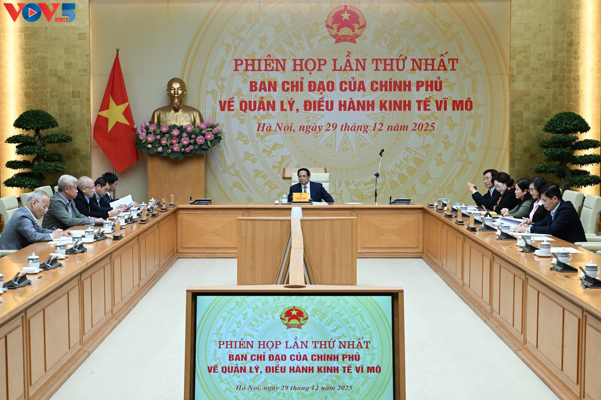 លោកនាយករដ្ឋមន្ត្រី ហ្វាម មិញជីញ ថ្លែងនៅកិច្ចប្រជុំ។ (រូបថត៖ VOV) |