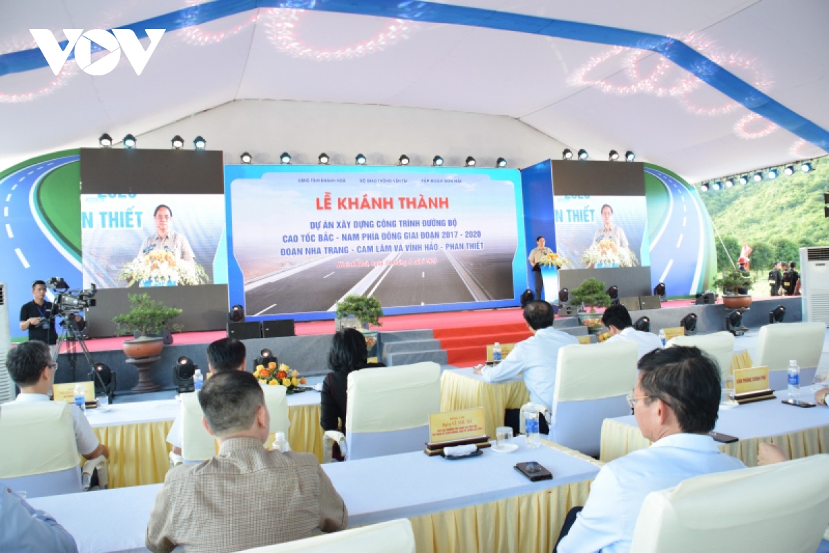 ថ្លែងមតិនៅពិធីនេះ លោកនាយករដ្ឋមន្ត្រី Pham Minh Chinh បានអះអាងថា ច្រករបៀងដឹកជញ្ជូនខាងជើង-ខាងត្បូង ដើរតួនាទីយ៉ាងសែនសំខាន់ ដែលជាឆ្អឹងខ្នងនៃច្រករបៀងសេដ្ឋកិច្ច-ដឹកជញ្ជូនរបស់ប្រទេសជាតិ។ ដូច្នេះ ដើម្បីបង្កើតឡើងកម្លាំងចលករ និងពង្រីកសក្ដានុពល ប្រៀបខ្លាំងរបស់ខេត្តក្រុងនានានៅតាមច្រករបៀងនេះ ផ្លូវល្បឿនលឿនជើង-ត្បូងផ្នែកភាគខាងកើត ត្រូវបានរចនាដោយមានប្រវែងសរុបជាង ២.០០០ គីឡូម៉ែត្រ ពីច្រកទ្វារព្រំដែន Huu Nghi - Lang Son ដល់ខេត្ត Ca Mau ដោយឆ្លងកាត់ខេត្តក្រុងចំនួន ៣២; ហើយបានសម្រេចនិងដាក់ឱ្យដំណើរការជាង ៨០០ គីឡូម៉ែត្រ។