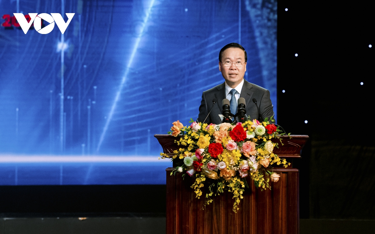 ប្រធានរដ្ឋវៀតណាមលោក Vo Van Thuong ថ្លែងនៅពិធីប្រគល់រង្វាន់។ (រូបថត៖ VOV) |