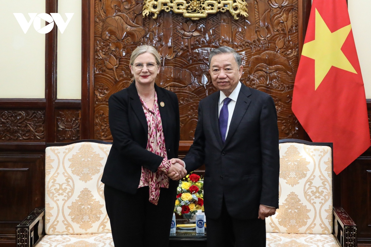 ប្រធានរដ្ឋវៀតណាមលោក To Lam បានទទួលជួបឯកអគ្គរដ្ឋទូតស៊ុយអែតលោកស្រី Ann Mawe។ (រូបថត៖ VOV) |