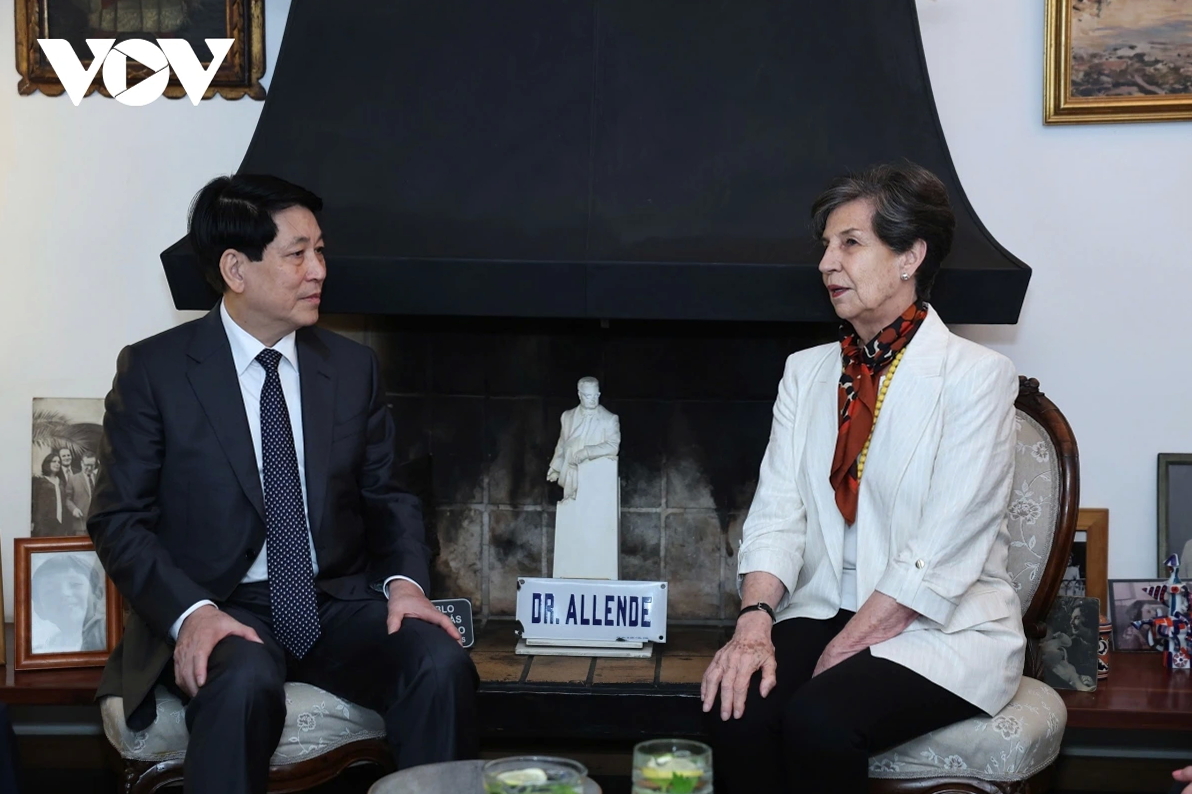 ជួបជាមួយសមាជិកគ្រួសារក្នុងនោះមានសមាជិកព្រឹទ្ធសភា Isabel Allende កូនស្រីរបស់អតីតប្រធានាធិបតី Salvador Allende ដែលមានមនោសញ្ចេតនាពិសេសចំពោះវៀតណាមដែរនោះ លោកប្រធានរដ្ឋបានសង្កត់ធ្ងន់ថា សម្រាប់ប្រជាជនវៀតណាម អតីតប្រធានាធិបតី Salvador Allende ត្រូវបានស្គាល់ថា ជានិមិត្តរូបនៃចលនាអន្តរជាតិគាំទ្រវៀតណាមក្នុងសង្រ្គាមតស៊ូប្រឆាំងចក្រពត្តិអាមេរិក និងជាមិត្ត សមមិត្ត និងជាអ្នកនយោបាយបរទេសជិតស្និទ្ធរបស់លោកប្រធានហូជីមិញ។
