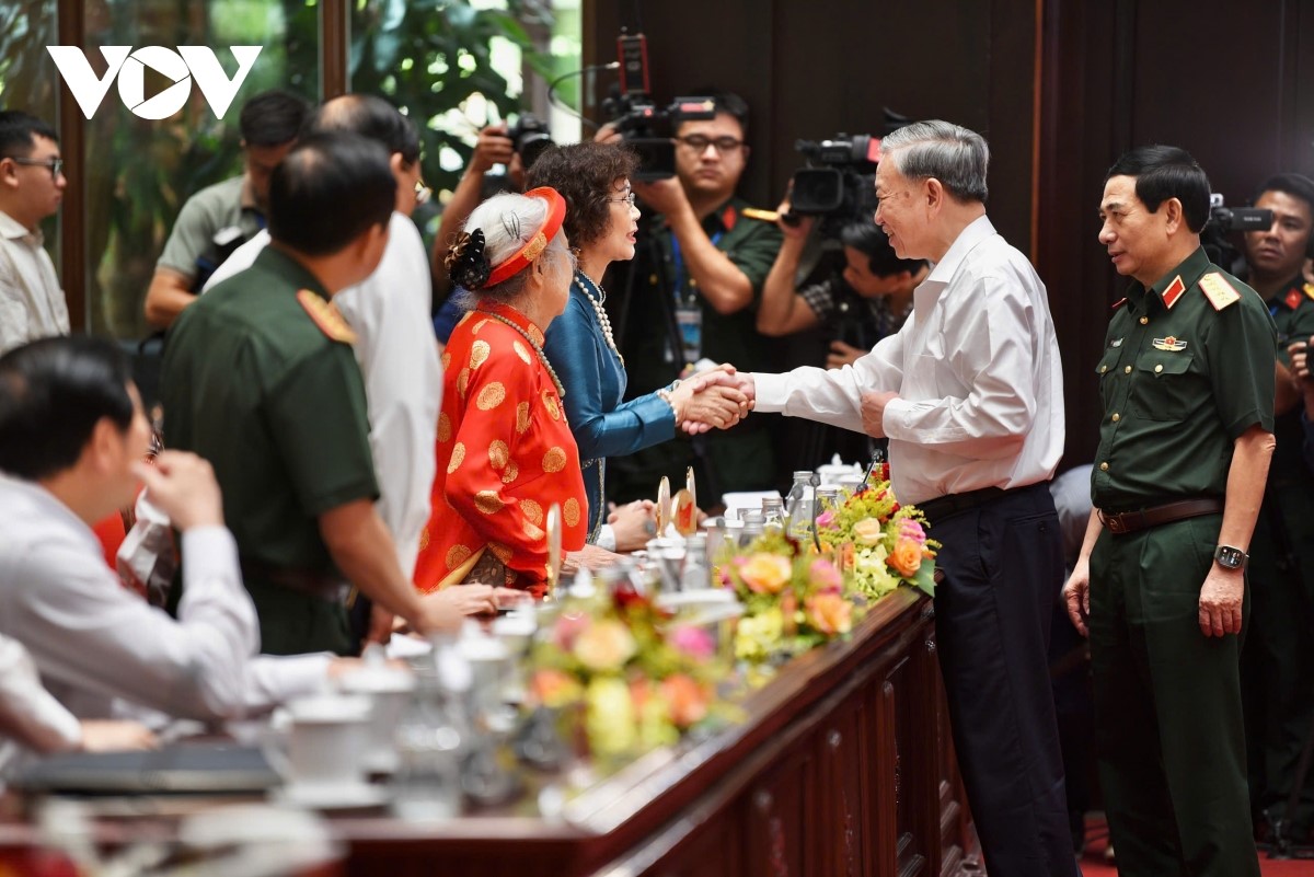 លោកអគ្គលេខាបក្ស តូ ឡឹម សំណេះសំណាលជាមួយកម្មាភិបាលបដិវត្តន៍ជើងចាស់ វីរអ្នកម្តាយវៀតណាម។ (រូបថត៖ Van Hieu/VOV) |