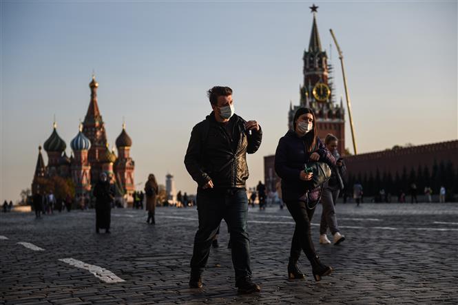 ប្រជាជនពាក់ម៉ាស់ដើម្បីការពារជំងឺកូវីដ១៩ នៅទីក្រុងមូស្គូប្រទេសរុស្ស៊ីនៅថ្ងៃទី ២៨ ខែតុលាឆ្នាំ ២០២០ (រូបថត៖ THX / VNA) |